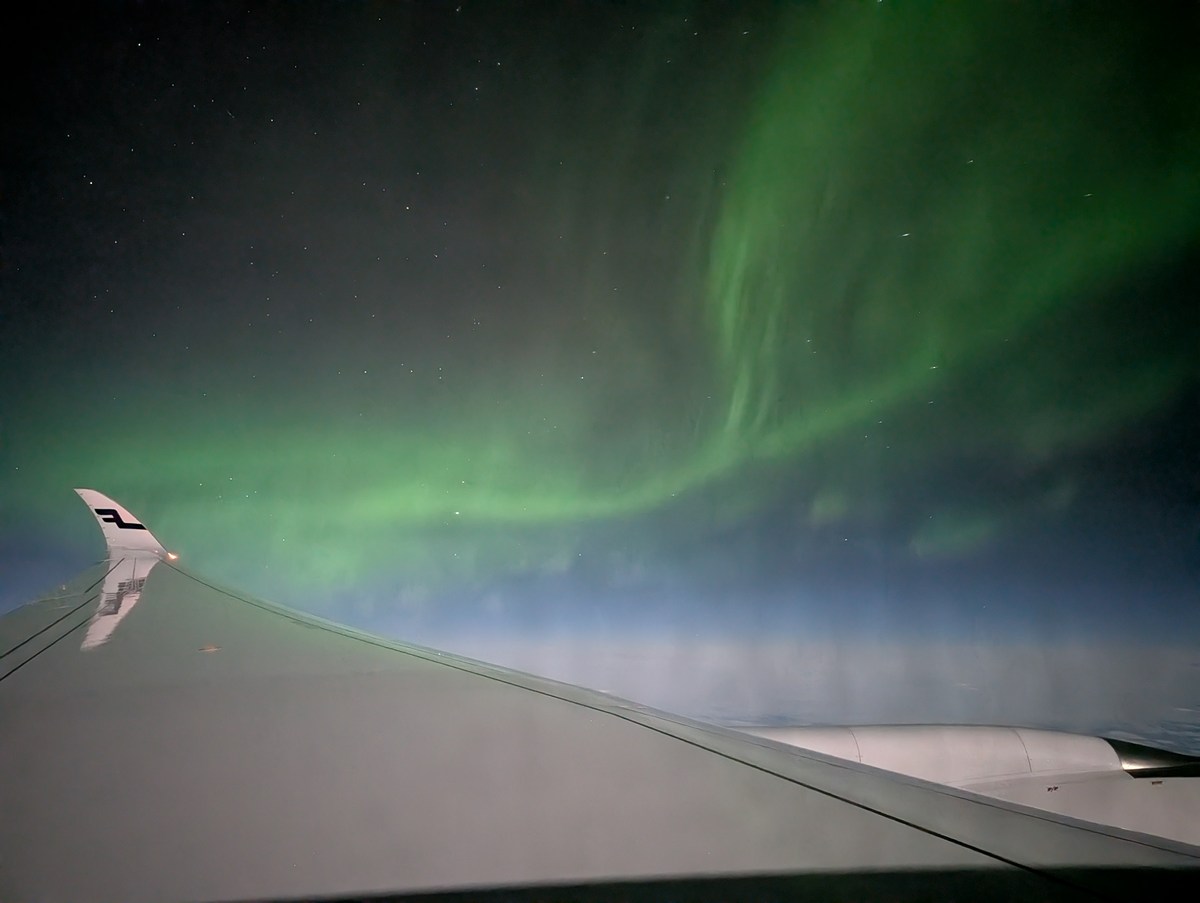 ちなみに今回同行をお願いしたフォトグラファー田所優季氏によると、機内でオーロラをうまく撮るコツはカメラやスマホの手前をブランケットなどで覆うことだそうです。