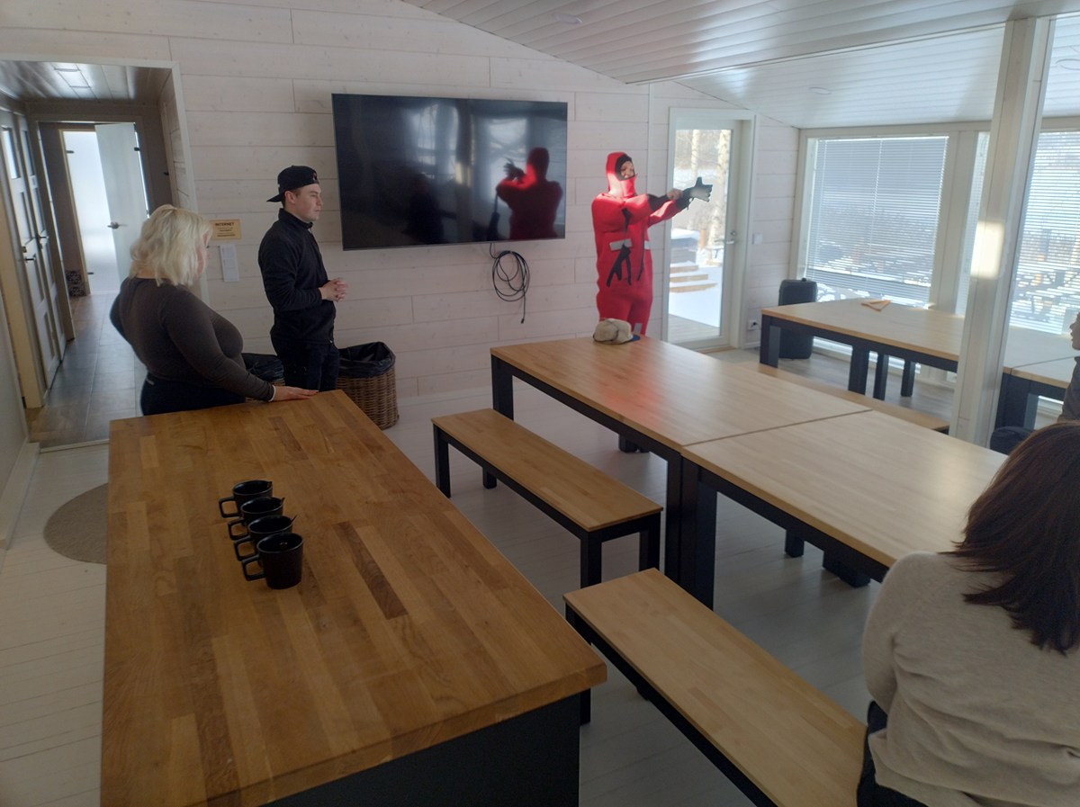 そこで今回のガイド役を務めてくれるユヴァスキュラ(Jyvaskyla)地区観光局のパイビ(Paivi)さんと合流。約10キロ、車で約10分のところにあるこのエリアを代表するウィンターリゾートであるヒモス(Himos)リゾートに到着です。