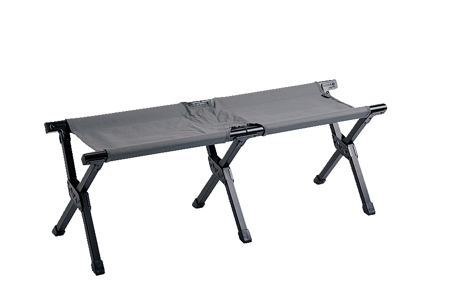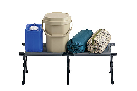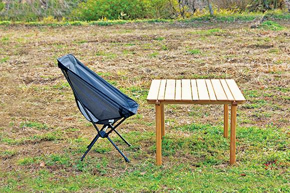コンパクトに折りたためるベンチは、クルマに積んでおくと便利。幅が109㎝あるので、大人2人が並んでも余裕で座れる。丈夫だからギア置きにも良し!