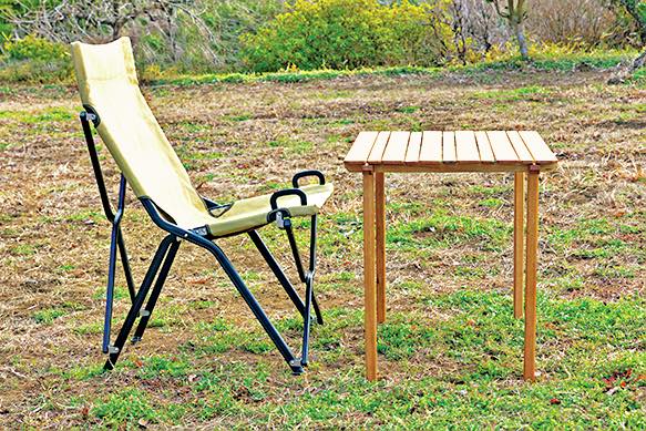 心地いい手触りが人気のローチェアがリクライニング式に進化。4段階のリクライニングができるナチュラルなローチェアで、アームはチーク材、シート地には火の粉にも強い6号帆布を採用。座ったまま手元で角度が変えられる、シンプルな構造も使いやすい。