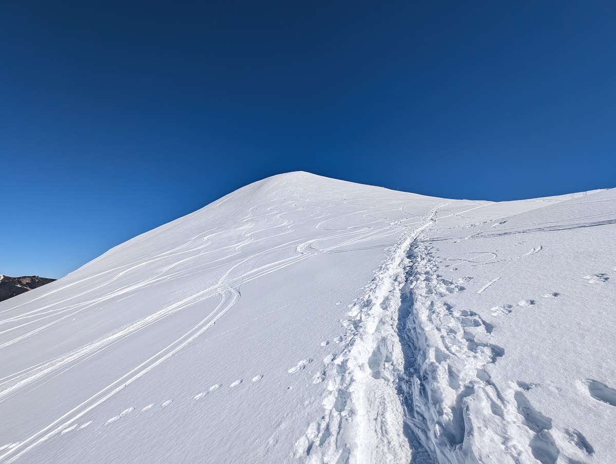 というわけでマイヤーホーフェンエリアで雪山ハイキングをしようとお考えのみなさん。特にこういう「登り下り」がある場所ではスノーシューズとかスノースパイクとか軽アイゼンとかご用意のうえいらしたほうがいいと思います。