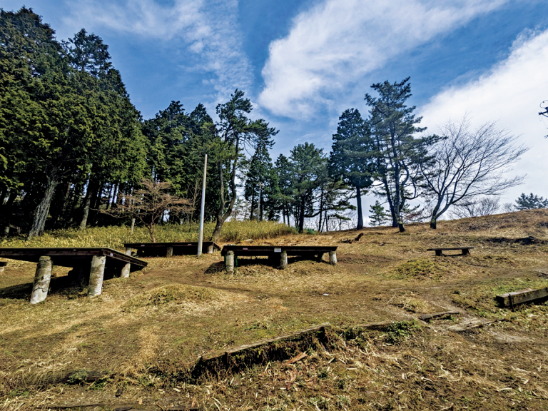 テントサイトは15張が設営できる広場と、4基のデッキサイトの2タイプ。場内には炊事場があるが、生水は飲用不可。トイレは徒歩5分の場所にある。山頂へは約5分。天気が良ければ大阪湾や淡路島まで眺められる。