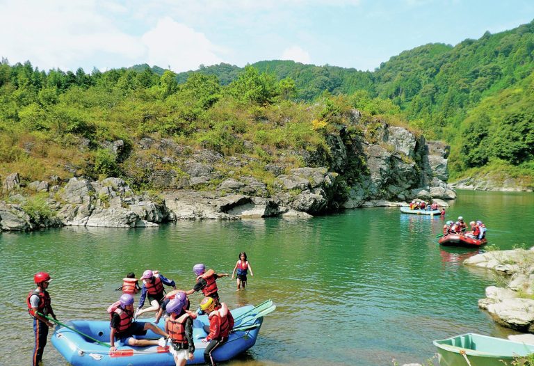吉野川本流でラフティング、カヌー、SUPと、さまざまなアクティビティーを体験できる。