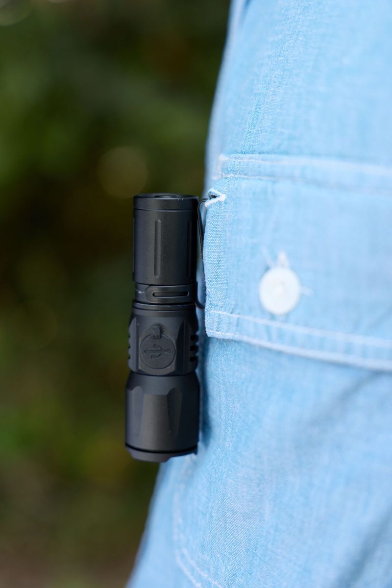 まぶしすぎて使いにくいのでは……と思うかもしれないが、ボタンを押して弱モードにすれば500ルーメンとなる。充電を長持ちさせたいときにも弱モードは重宝するだろう(点灯時間は約2.5〜5時間。満充電まで約2時間)。また、フラッシュ(点滅、500〜300ルーメン)のほか、ボタン長押しのSOS点滅にも切り替えられる。