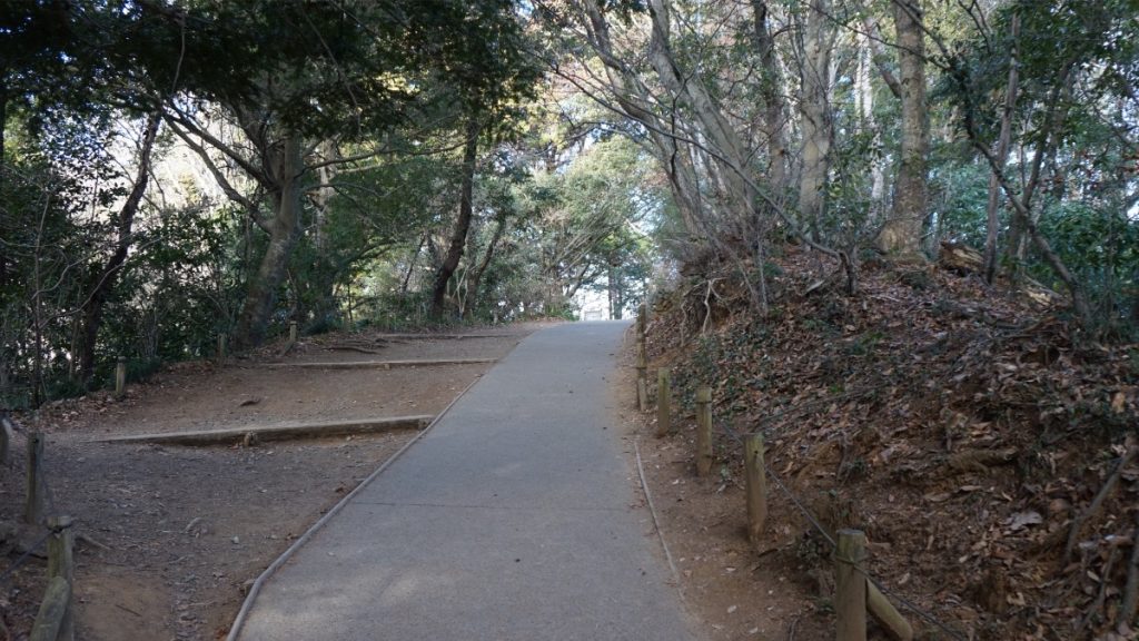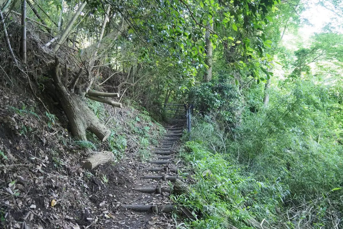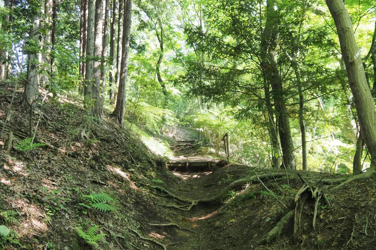 しばらく舗装路を歩いたあと、土の登山道に入り、ゆるやかな上り坂を登っていく。最初は息が上がるような気がするが、あせらずにおしゃべりを楽しみながら、ゆっくりのんびり歩くべし。