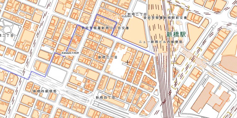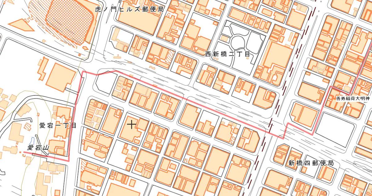 どのルートで登るか、地図を見ながらイメージを膨らませた。愛宕山への「最寄り登山口」は、日比谷線神谷駅か、日比谷線虎ノ門ヒルズ駅だ。だが、今回チョイスしたのはJR新橋駅・烏森登山口。地図を見て面白そうなルートだったことと、登る前の仕事のアポイントがJR品川駅だったことが理由である。