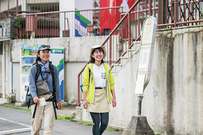 初秋のある日、二人がやってきたのは筑波山中腹にあるつつじヶ丘バス停。晴れてはいるものの、流れてくる雲は山頂のあるあたりを隠している。