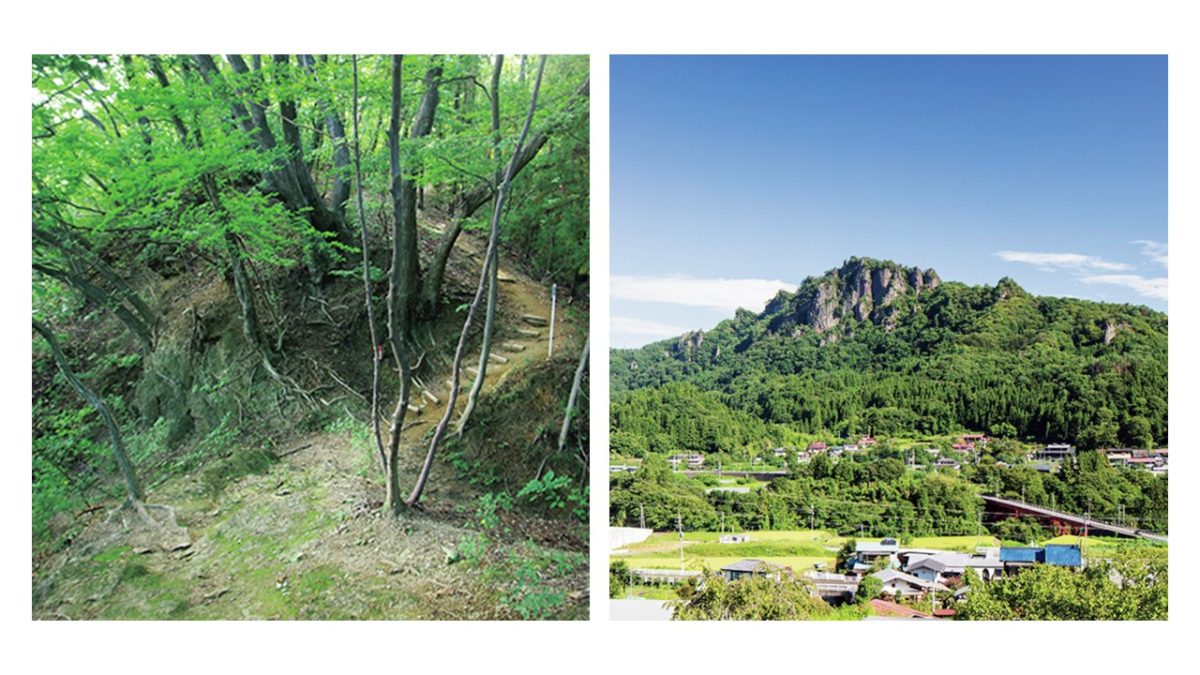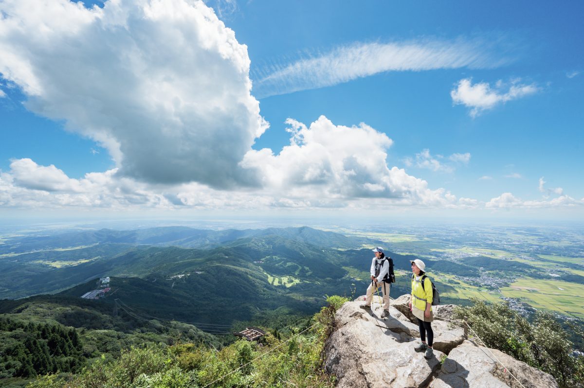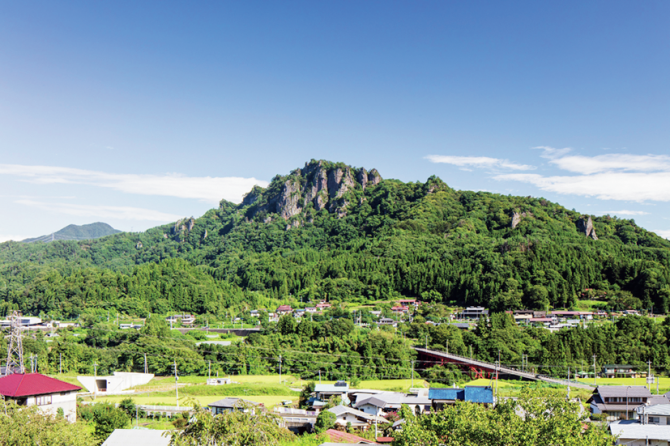 吾妻八景を代表する景勝地として知られ、戦国時代に真田幸村氏の拠点であった城跡もある。登山口から約40分で登頂できる「沢通り」コースなど、4つのルートが楽しめる。山頂からの眺めが素晴らしく、晴れた日には遠く富士山も。紅葉と新緑の季節はとくに賑わう。
