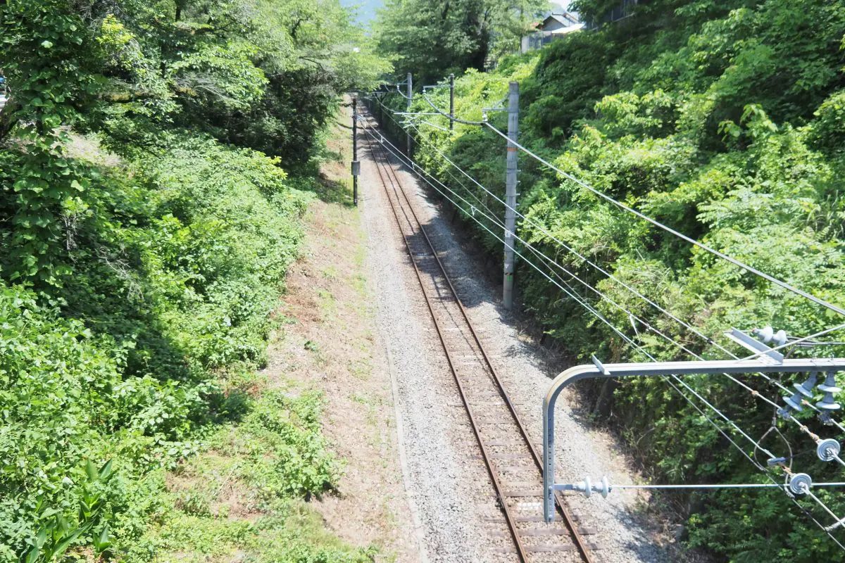 麓を通る上信電鉄は、ローカル感があってどこか懐かしい。山からも眺められるが、踏切から山を仰ぐほうが、写真を撮るのに好アングル。