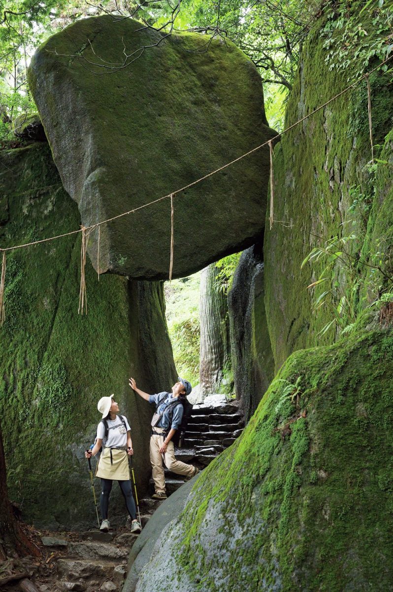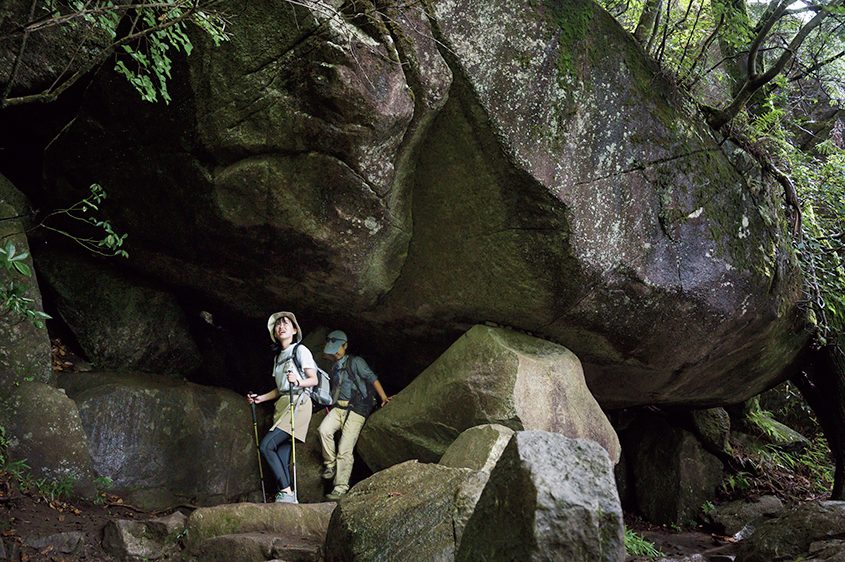 「くぐれるものは通っておく!」ともぐり込んだのは大岩がつくる岩屋。山頂地近くの大岩には、ひとつひとつ名前と由来がある。
