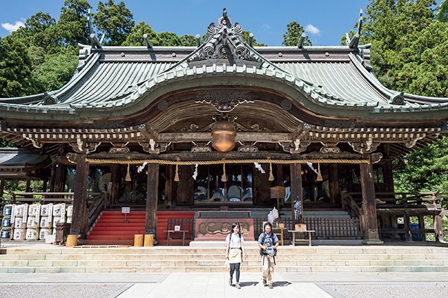 ケーブルカーを降りて少し歩いた先が筑波山神社。参道には土産物店が並び、立ち寄り湯を使わせてくれるホテルもある。