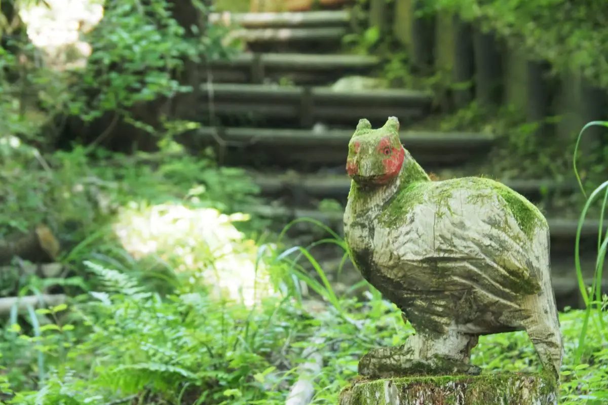 高:そうなの。関東平野にポツンとあるのに頂上付近にはブナの林が残っていたりもして、自然も面白いんだ。この岩場まで来たらもうひと踏ん張り。頂上直下の坂を登ったら頂上に出るよ。その神社の先がもう頂上!