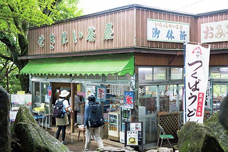 女体山と男体山をつなぐ鞍部には数軒の茶屋があり、軽食を食べられる。一番人気は筑波の名を冠したつくばうどん。美味!