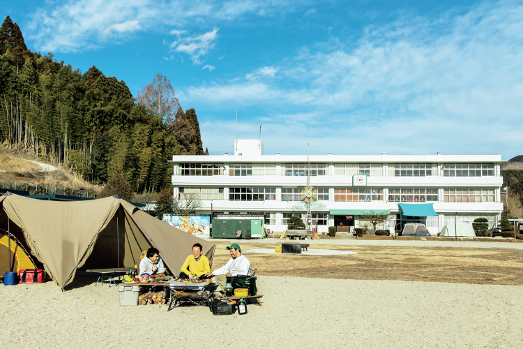 2016年に閉校し、当初はホテルとしてリノベーションされるはずだった美野沢小学校。だがコロナ禍に突入し、アートやキャンプ、サウナを主軸とした訪れやすい施設として生まれ変わることになった。校舎内のトイレなどは改修されているが、建物は小学校時代の面影を残している。校庭での特別活動(キャンプやサウナ)はもちろんのこと、美術、体育といった学校授業さながらの遊びが楽しめる設備も。屋内外に遊び場があるので、雨天時にも強い。ファミリーやグループで過ごすには絶好の遊び場といえるだろう。