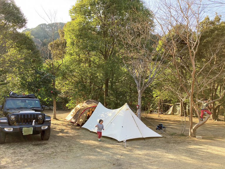 オーナーである君嶋陽一さんは林業を営みながら、先祖代々守られてきた自家所有の山林をキャンプ場として開業。匠の技で野営を楽しみたい人に向け、自分だけの空間で遊び倒せるアクティブなフィールドにした。山に響き渡るシカの雄叫び、空を優雅に舞うトンビなども感じられる。オートサイトもあるので、ワイルドな自然を楽しみたい初心者にもおすすめ。