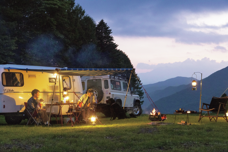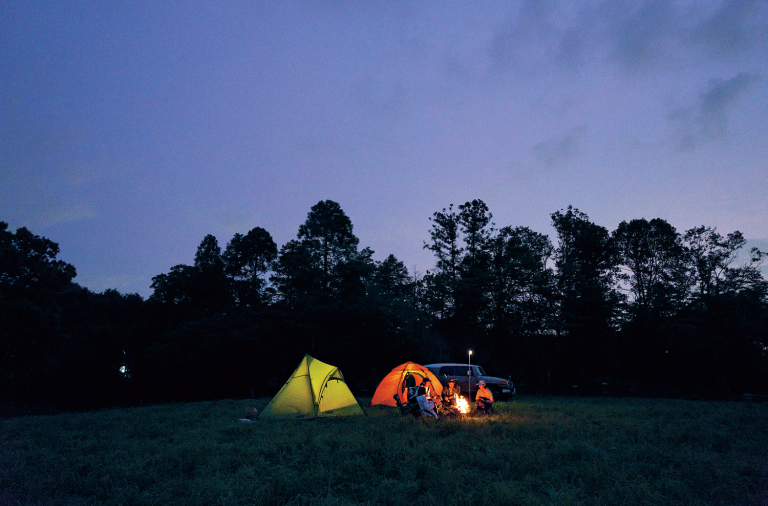群馬県・片品村にある、標高約1,400~1,500mの高原キャンプ場。 広大なゲレンデを活用した区画なしのフリーサイト形式で、車の乗り入れも可能。芝生と土の混ざるサイトは見晴らしが良く、自然の開放感に包まれる。夏でも夜は20度Cを下回ることもあり、星空観察やロープウェイを使った高地散策など、高原リゾートならではの楽しみ方が満載だ。