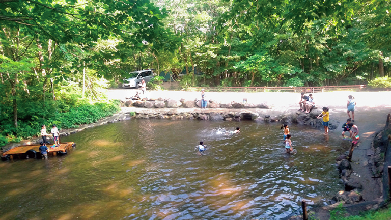 場内には河内川が流れ、夏は川遊びを楽しみながら広々とした場所でバーベキューができる。晴れている日に利用すると陽光を全身に浴びるが、暑くても目の前にある川で涼むことができるのであまり苦にならない。