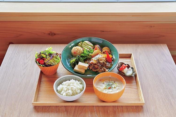 地元の人でも利用できるカフェ&バルでは、地元の食材をふんだんに使った料理を堪能できる。また、アルコール提供もあり、バーとしての利用も可。