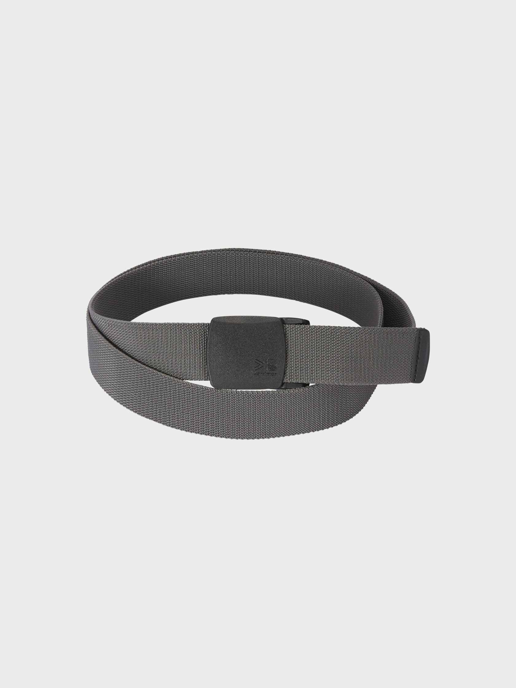 ナイロン約98%で作られた頑丈なベルトです。引っ張って調整する無段階調整式で、バックルにはアークテリクスのバードロゴがあしらわれています。