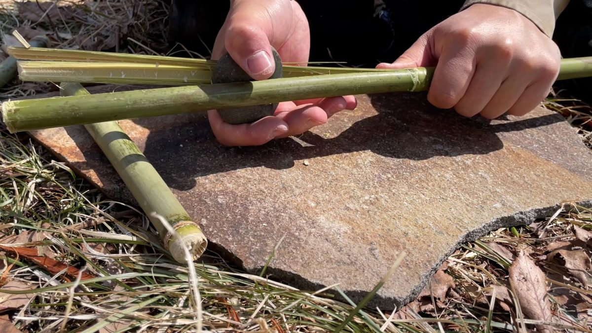 その時期なら石刃なんて使わずとも、手と歯を使って簡単にヒゴが作れるらしい。なんということだ。僕は「旬」を間違えていたのだ。しかも笹が生えてから何年目かなんて気にもしていなかった。