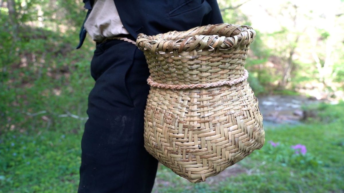 旬といえば、こんなこともあった。春先に笹を使ってカゴを作ったときのこと。笹は縄文人も利用していて、およそ3000年前の縄文時代晩期の遺跡から、笹カゴに漆を塗ったものが出土している(ちなみに竹は外来種で、縄文時代の日本にはまだなかったらしい)。