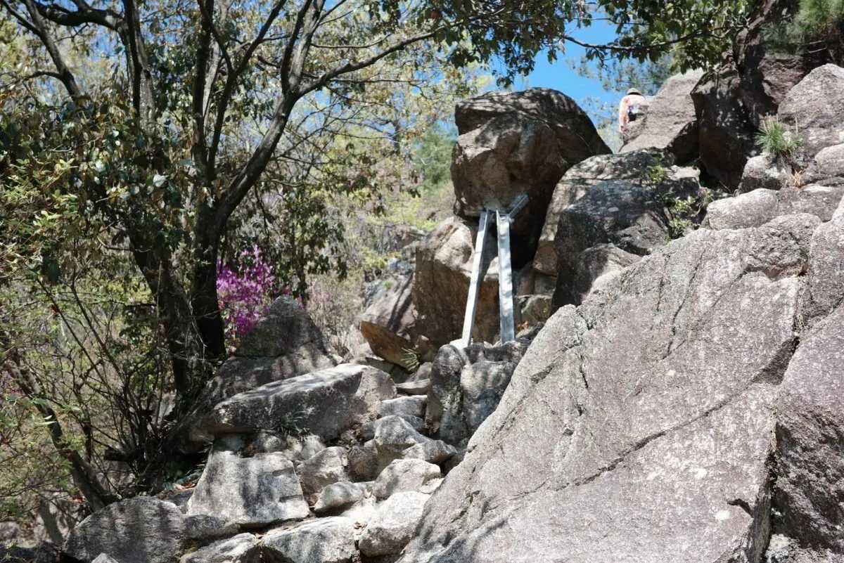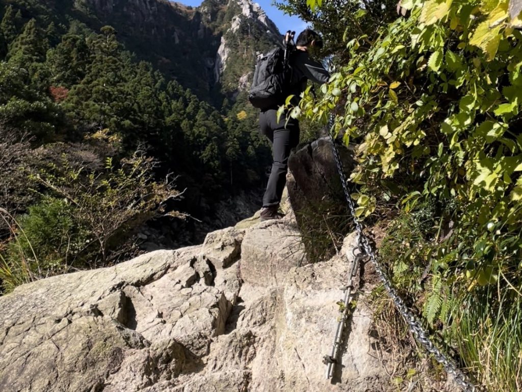 登山道から見える岩壁は、クライミング用の登山道になっている。初心者の方にとっては、珍しい景色だと思うのでここもおすすめポイントだ。