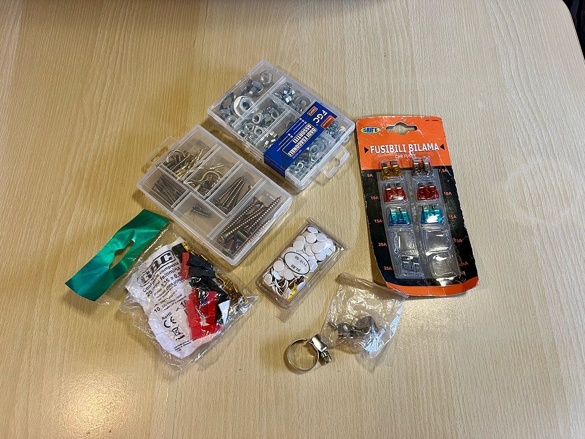 「これさえあれば直せるのに…!」という事態を防ぐために、小さなパーツ類もいくつか常備しています。ネジやナット、ヒューズなどは、旅の中で必要性を感じて少しずつ揃えていきました。また、消耗品の車内照明や故障しやすい水回りのパーツや水道ポンプは、キャンピングカー専用の物でなかなか入手しにくいので、予備を持ち歩くようにしています。