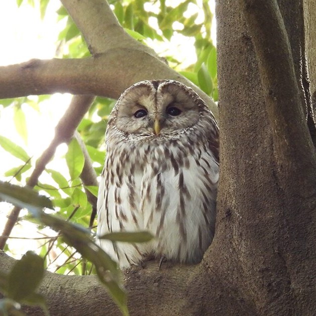 アカゲラはキツツキの仲間の1種。枯れ木をつついて穴をあけ、中に隠れた虫を食べます。夏の間も日本の森にいますが、秋冬は木々の葉が落ちて特に観察がしやすくなります。木を叩く音を頼りに頭上を探してみてください。