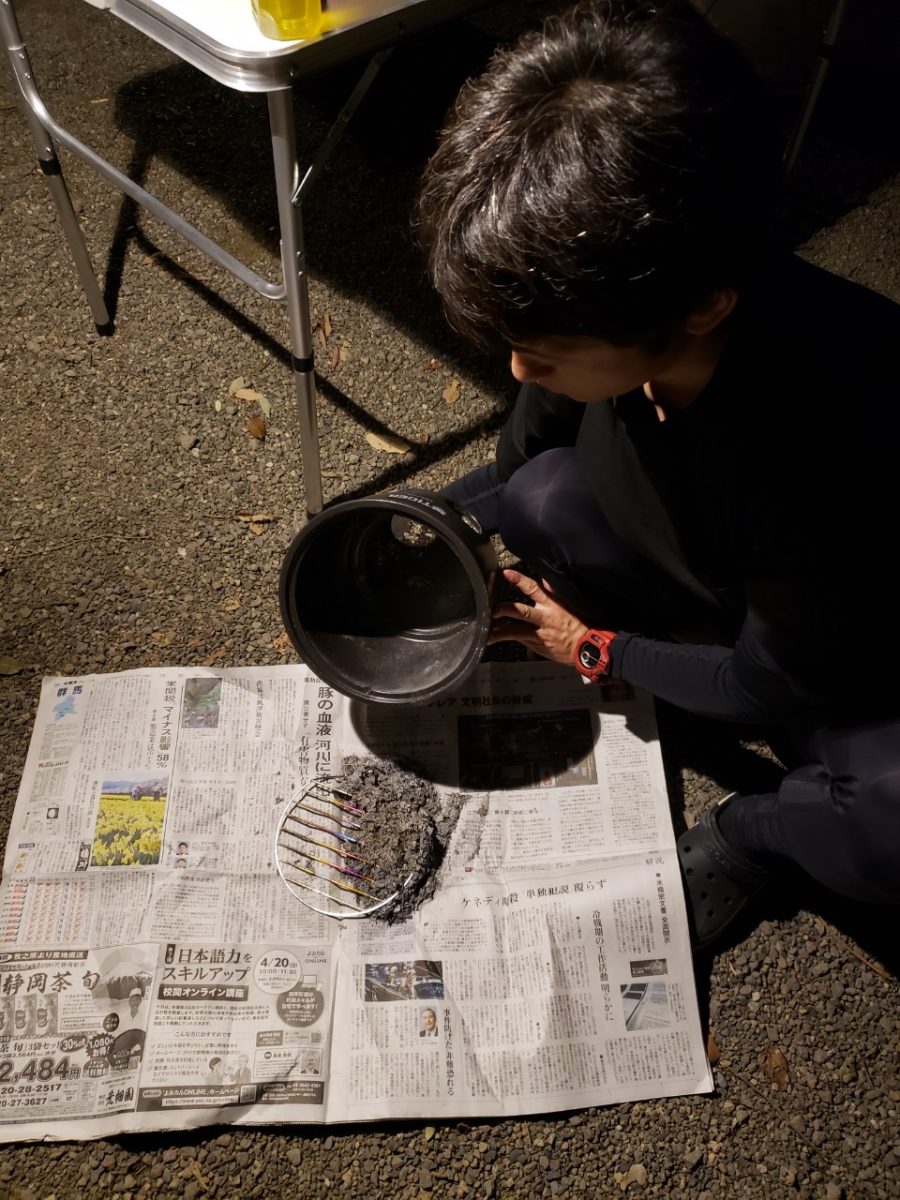 最後の蒸らし用新聞紙だけは私(父)が投入・着火権を何とか獲得しました。それ以外の着火は親が見守りながら子供たちだけで安全にできました。
