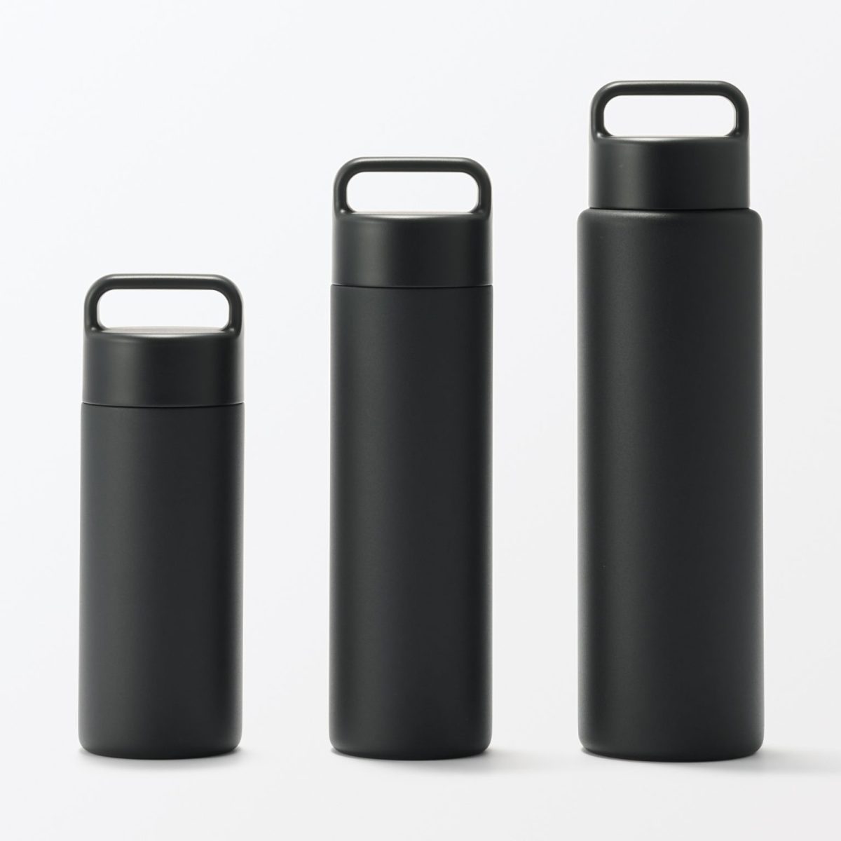 無印良品は、従来からの保温保冷ボトルの容量と使い勝手を見直してリニューアル。持ち運びやすいハンドル付きがラインナップに加わり、750mLの大容量も選べるようになった。