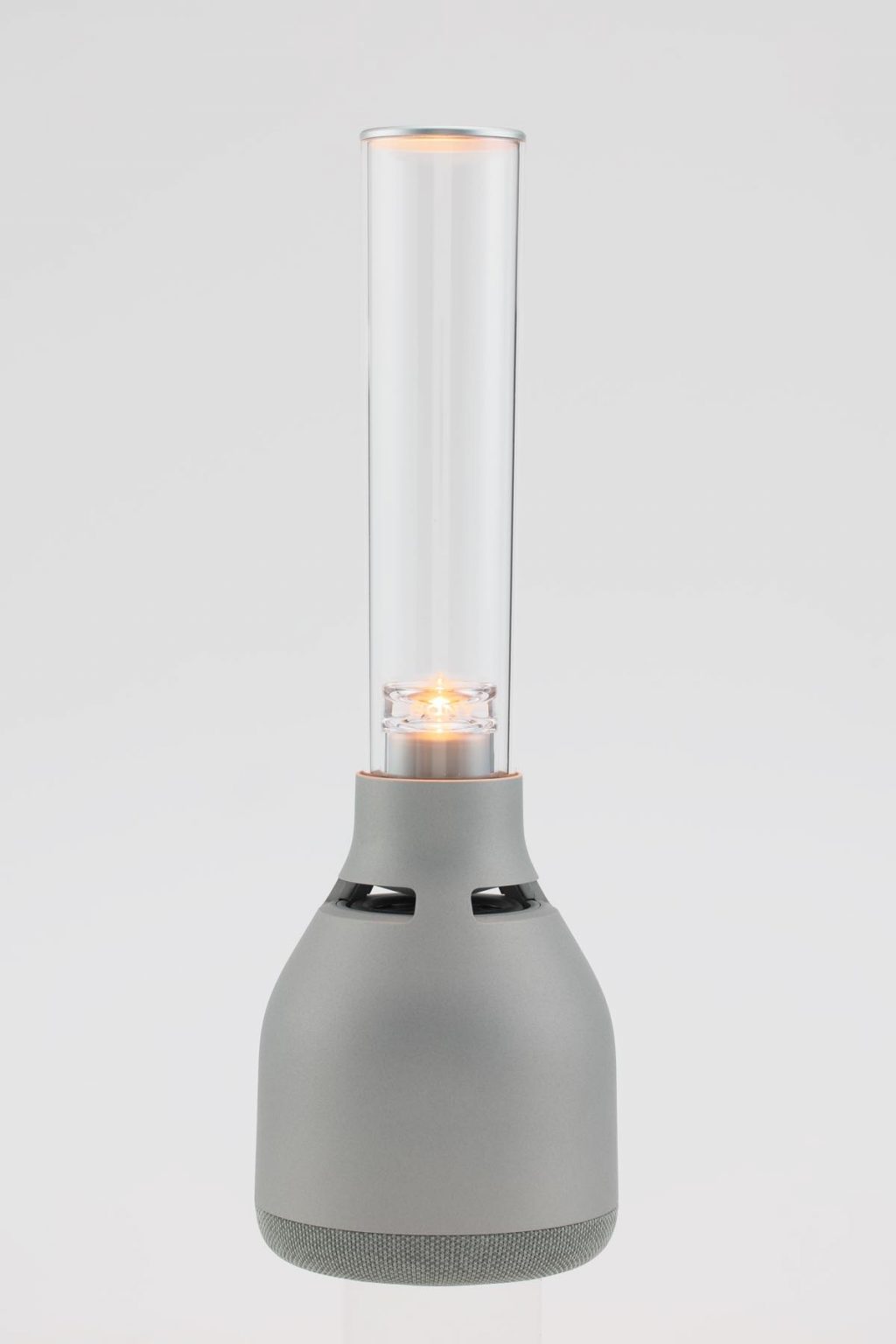 Bluetooth接続が可能で全方位に音が広がるモノラル再生のスピーカー。ルミエールランタン風の調光可能なLEDライトを搭載している。ハンドルは別売り。