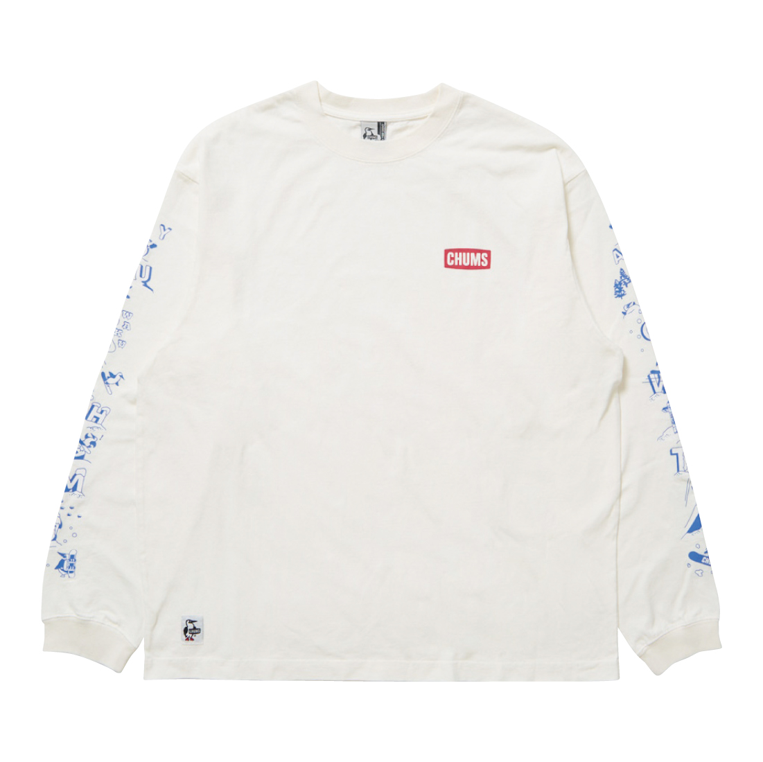 袖口に、マスコットキャラクターのブービーがスノーボードを楽しむグラフィックをあしらったロングスリーブT。