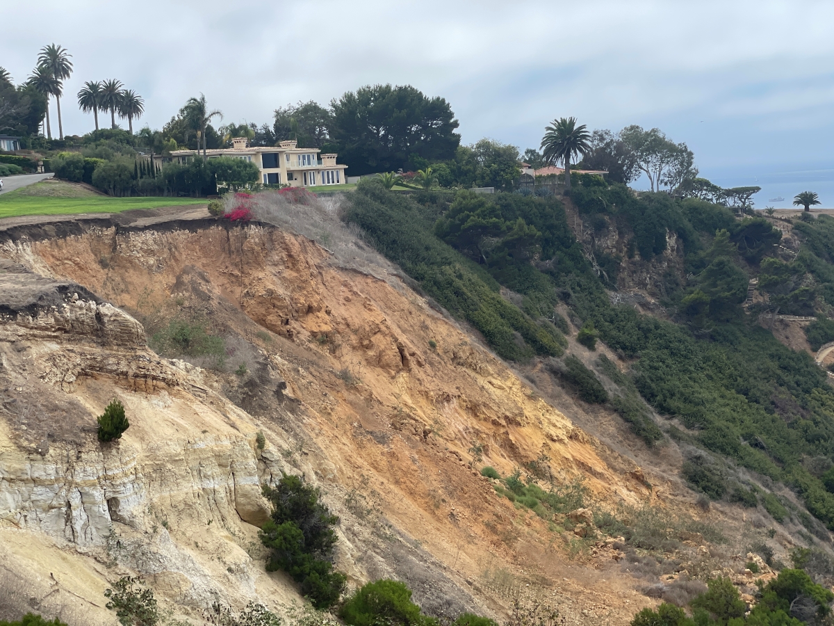 その理由は、ここ近年パロス・ベルデス半島で問題になっている「がけ崩れ」です。パロス・ベルデス半島の地質は比較的もろいのです。前述しましたように、海を見下ろす景色のよい斜面には豪邸が建ち並んでいるのですが、そういう場所ほど風雨や潮風によって浸食が進みやすい特徴があります。
