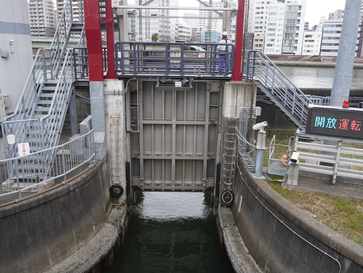 ただし、その支流は今も残っていて、それが住吉神社のすぐそばを流れる佃川支川(しせん)です。佃川支川と隅田川の合流地点には住吉水門があり、その手前には住吉小橋がかかっています。