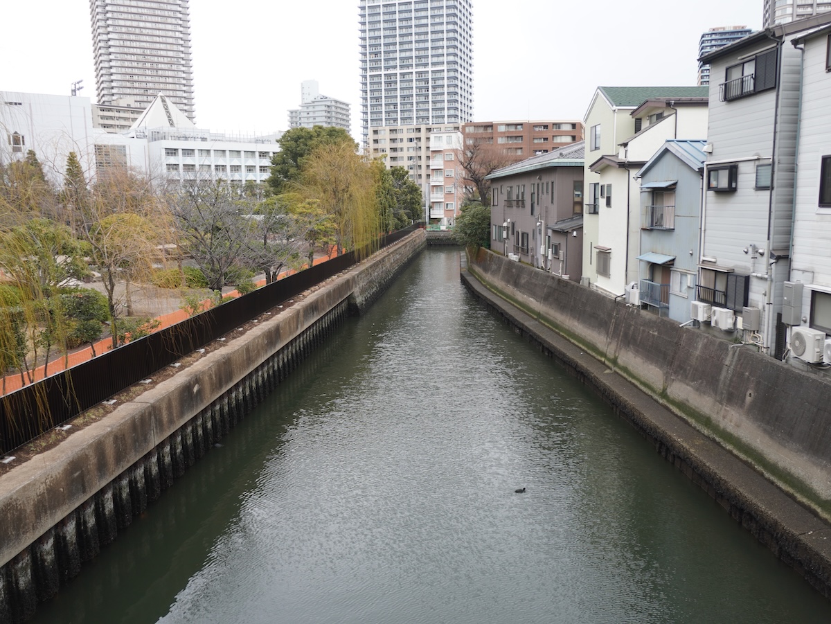 前回も触れましたが、もともと佃島と月島は佃川(つくだがわ)で隔てられていました。佃川は、佃大橋の架橋に伴う道路建設によって埋め立てられました。
