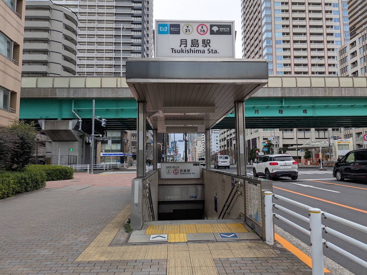 佃ポンプ所から東京メトロ有楽町線、都営大江戸線の月島駅はすぐ近くです。ということで、佃島〜石川島の北側の川沿いをぐるっと半周した「石川島GREEN WAY」は、ここでフィニッシュとなります。