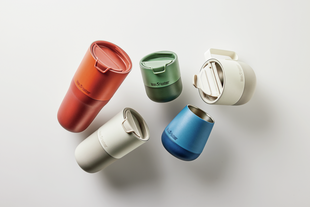 リサイクルされた18-8ステンレスを90%使うことで、温室効果ガスの排出を従来品より50%削減するエコなモデル。表面を保護する「Klean Coat」が施されているので金属特有の冷たさがなく、手に持ったときの感触がとても良いのが印象的だ。16ozモデルもある。(画像左上)