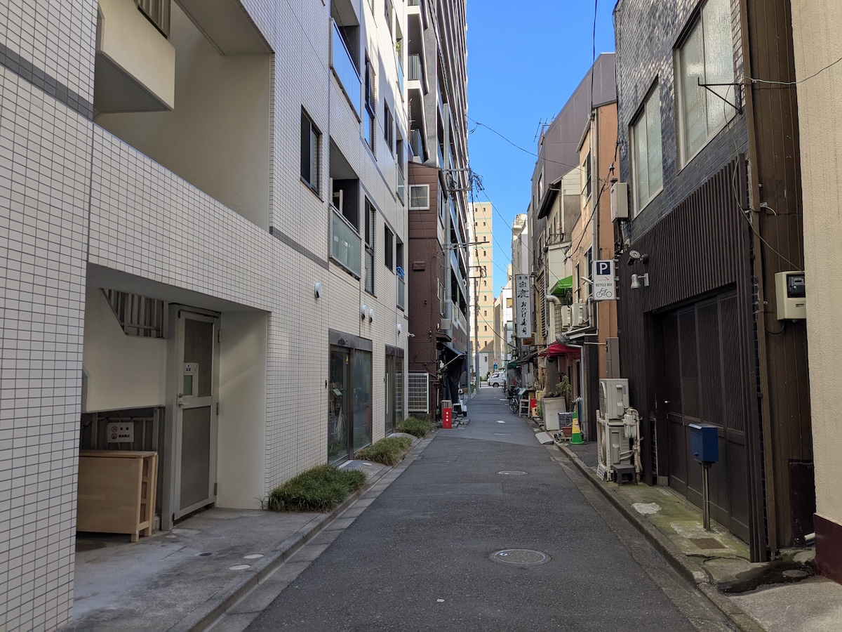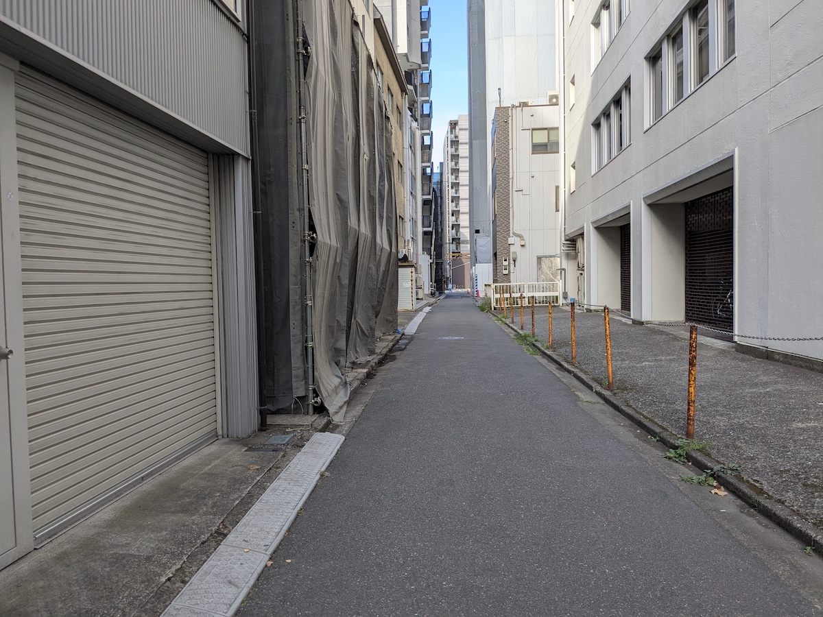 まずは、前回のフィニッシュ地点である小伝馬町駅近くの十思(じっし)公園を出発。十思公園から2ブロック北側の、ビルの間の細い道を進みます。