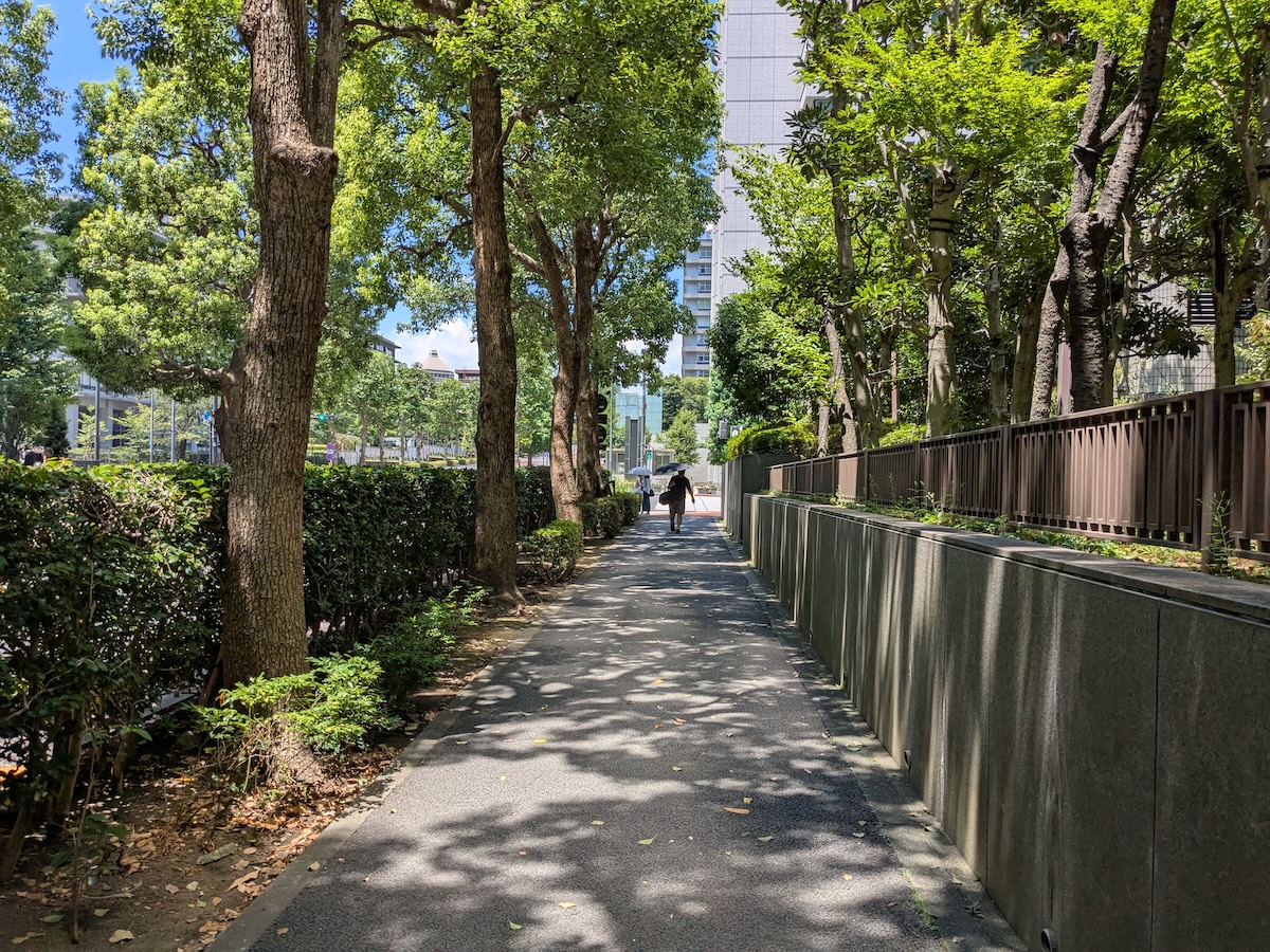 官庁街というと、近寄りがたいというか、味も素っ気なもないというか、少なくとも散策には不向きなイメージです。でも、各省庁の敷地内も通りも意外と緑が豊富で、木陰を心地よく歩けます。ついでにいうと、都心ながら人通りも少なく、思いのほか快適です。