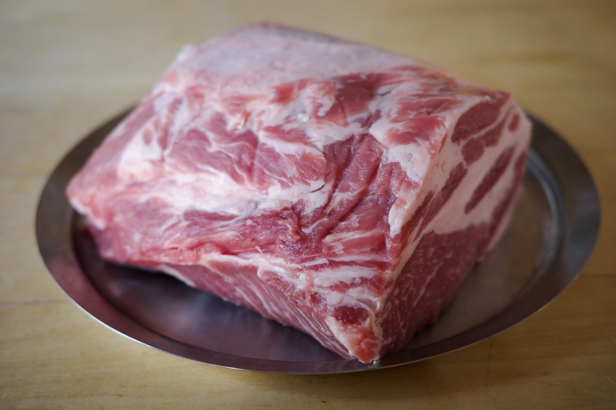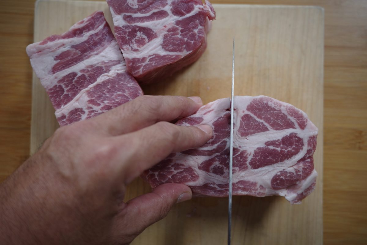 豚肩ロースをおおよそ6cm角のサイコロ状にカットします。