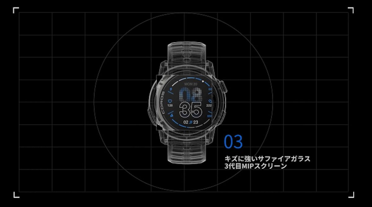 加えて第3世代MIP常時オンディスプレイを搭載。直射日光や雪面の照り返し、樹林帯の陰でも視認性が高く、行動を止めずに必要な情報を即座に読み取れる。