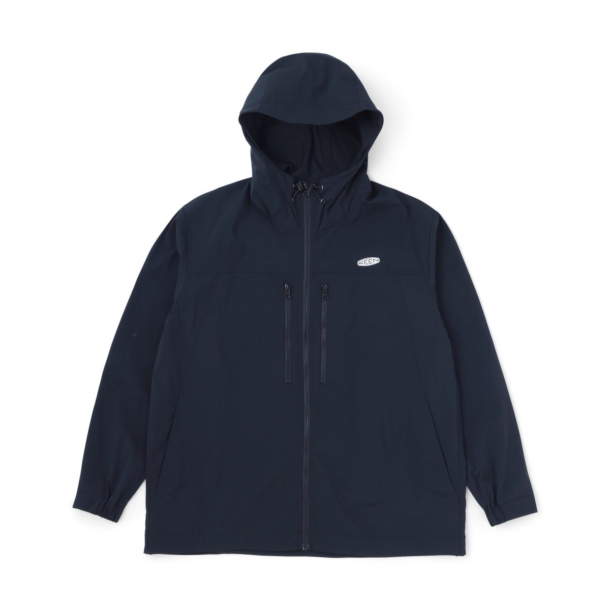 こちらはC0撥水加工を施した「ナイロン パッカブル フルジップ ジャケット」。前両サイドには500mlのタンブラーが収納できるジップポケットが装備されているほか、フードや裾のドローコードでサイズの調整も可能。ダブルジップにより、スタイリングしやすいデザインなのもポイントだ。