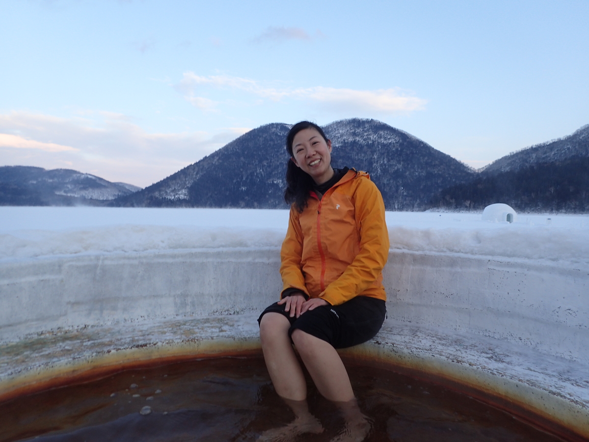氷に囲まれて寝るという特別な体験も、このお風呂があるから幸せな体験でした。朝も夜も、氷の世界で体が冷えても、芯から温めなおしてくれる特別な温泉です。夕方の景色も最高でしたが、朝の光あふれる露天風呂は格別で、冬の期間限定の村、コタンでの体験は、忘れられない冬の記憶になりました。