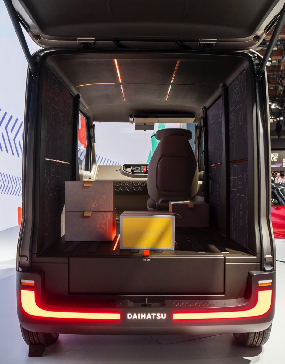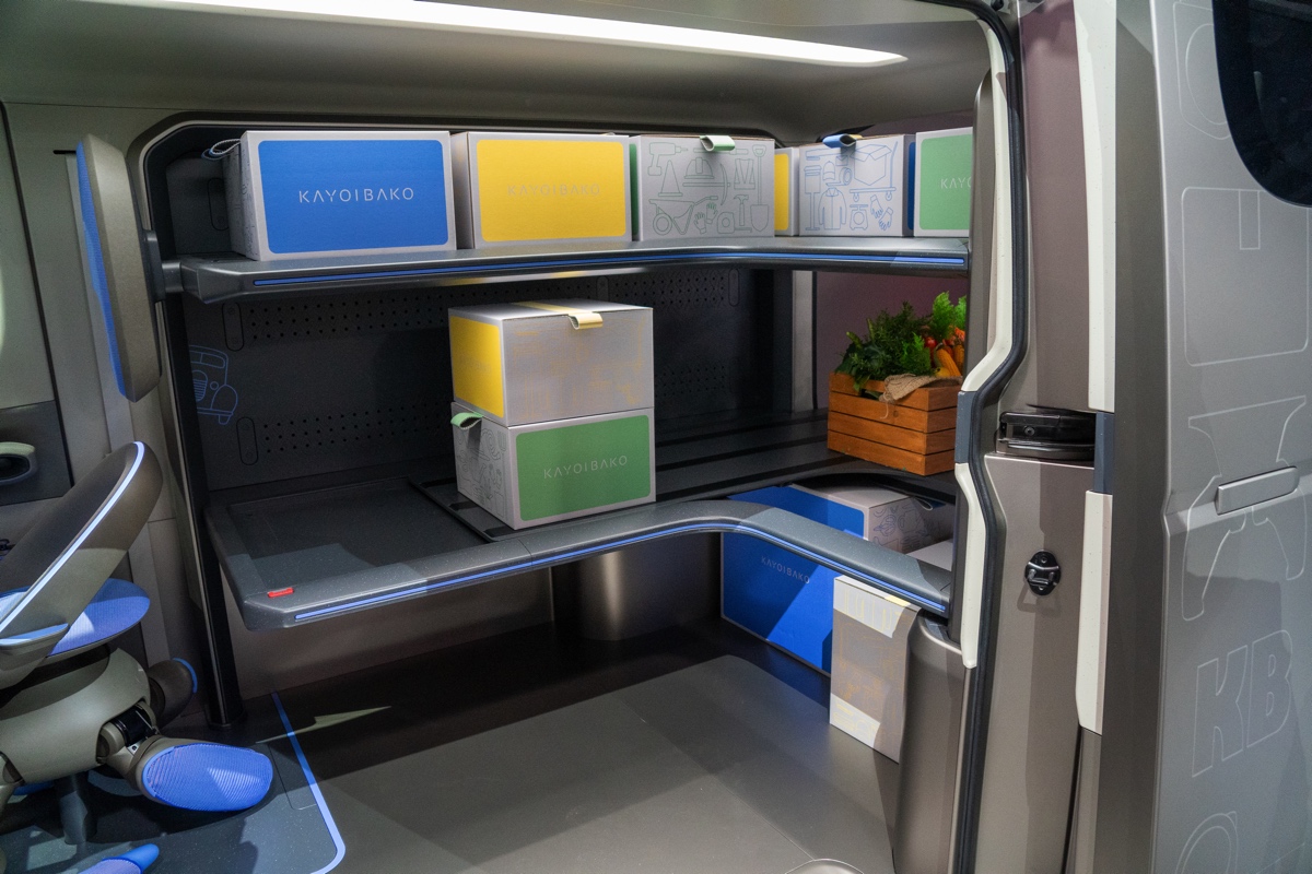 そして末っ子となるのが「KAYOIBAKO-K(カヨイバコK)」。こちらも運送業を想定した軽ワンボックスで、EVのためフラットなフロア下にバッテリーを搭載。荷室サイズなどはハイゼットカーゴ同等で、自動運転に対応したモデルを想定して製作。