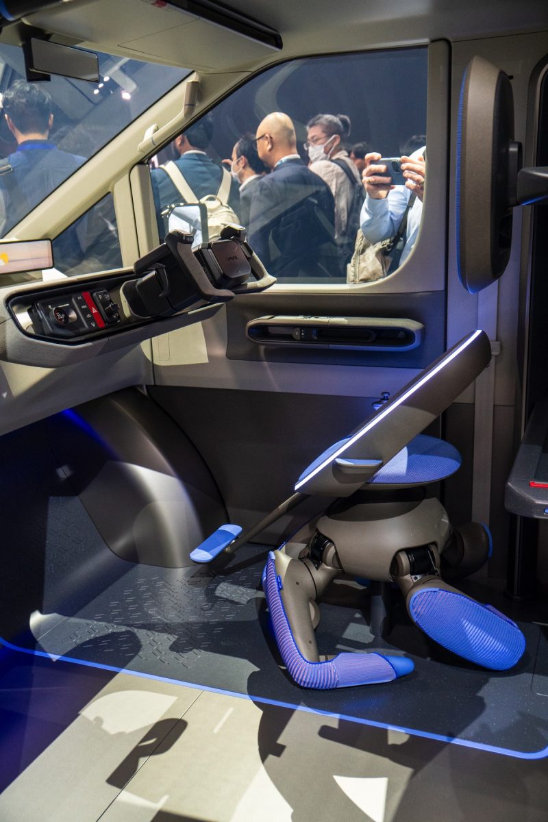 前回の2023年のJMSに「KAYOIBAKO(カヨイバコ)」の名で登場したEV商用バンのコンセプトモデルが、さらに進化を遂げてブラッシュアップ。足の不自由な人でも配送する人が座ったまま移動が行える4脚ロボット「walk me(ウォーク・ミー)」が、そのまま車内に入って運転席で固定でき、自動運転・ペダルレスでも運転が可能という想定。こちらはサイズ的にグランマックスカーゴと同程度な感じでした。