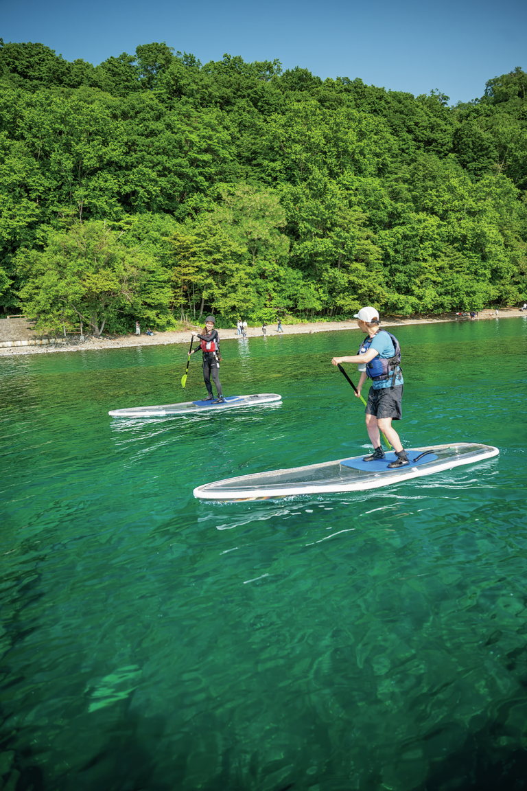 ほかの水上アクティビティよりも、安全かつ自分のペースで体験できるので、水上バイクなどが苦手な人でも取り組みやすいのもポイント。