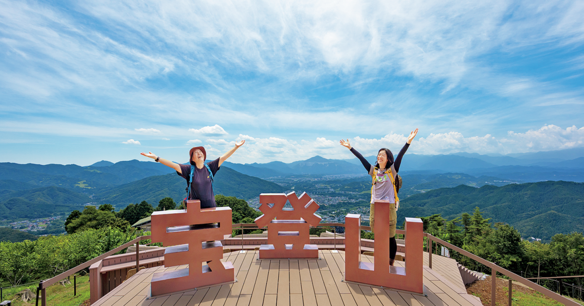 秩父鉄道の親鼻駅と和銅黒谷駅から登山ルートが整備されていて、どちらも山頂まで片道1時間程度。秩父唯一の独立峰で、山頂に設けられた「美の山公園」は、奥秩父の山々を一望。サクラ、ヤマツツジ、アジサイの公園としても名高い。