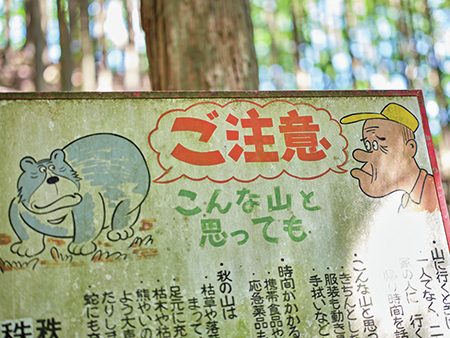 「こんな山と思っても」と、油断禁物を促す看板も。