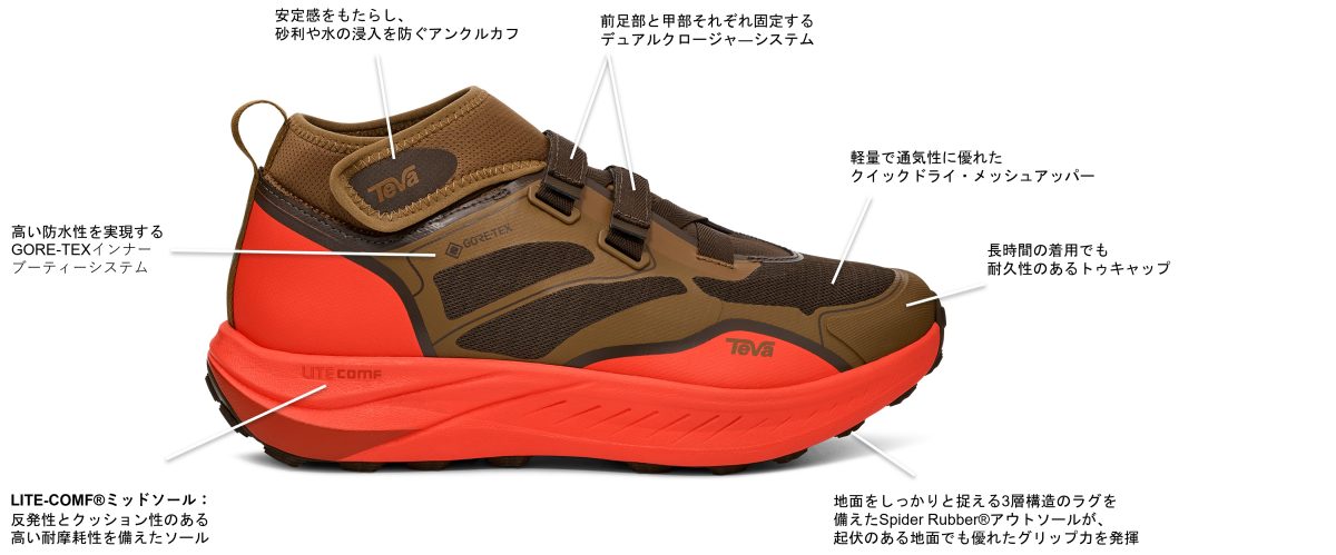 これはアメリカの若者の間で広がっているというハイキングスタイル“Light & Fast Hike(ライト&ファストハイク)”に着想を得たアイテムで、軽快さとスピード、そして快適性を追求したミッドカットモデルのアウトドアシューズだ。