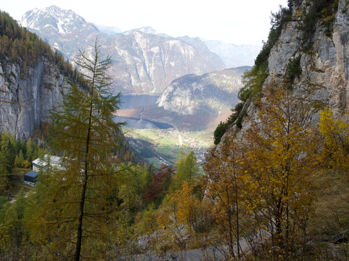 まだまだ洞窟探検がしたいと思うのに、気がついたらもう出口。氷の洞窟から一歩外へ出ると、秋晴れの美しいオーストリアの山と湖の風景が広がります。ビバ、オーストリア。オーストリア、万歳!